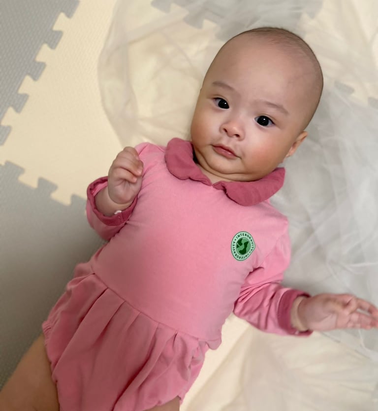 Snap Buttons for the back and snap buttons for the front rise are helping me to put on the bodysuit for Hazel much easier. Neck width is wide and it is really cozy.